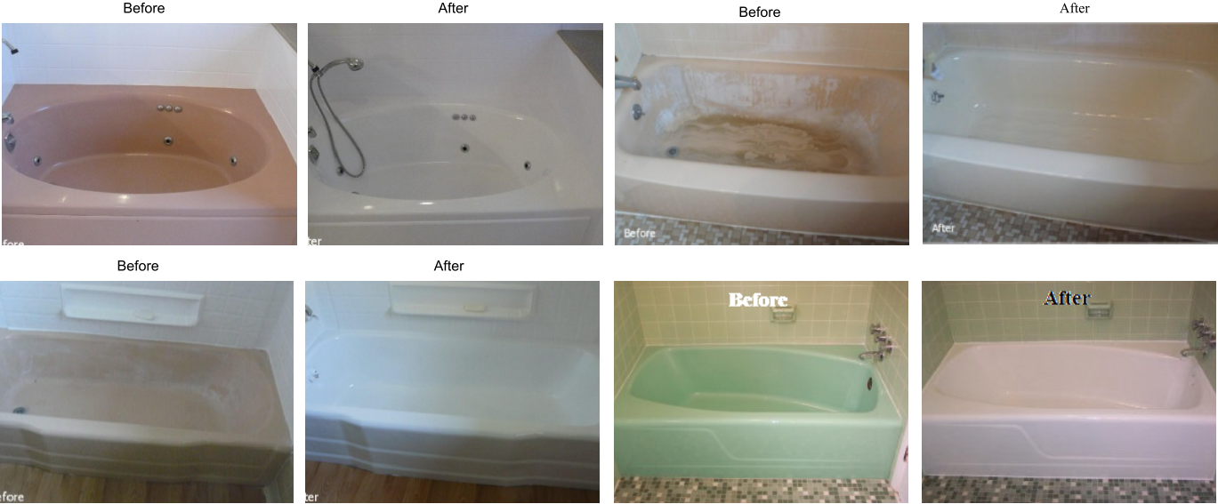 surface before the tub reglazing. After the new coat is applied, in 24 hours
